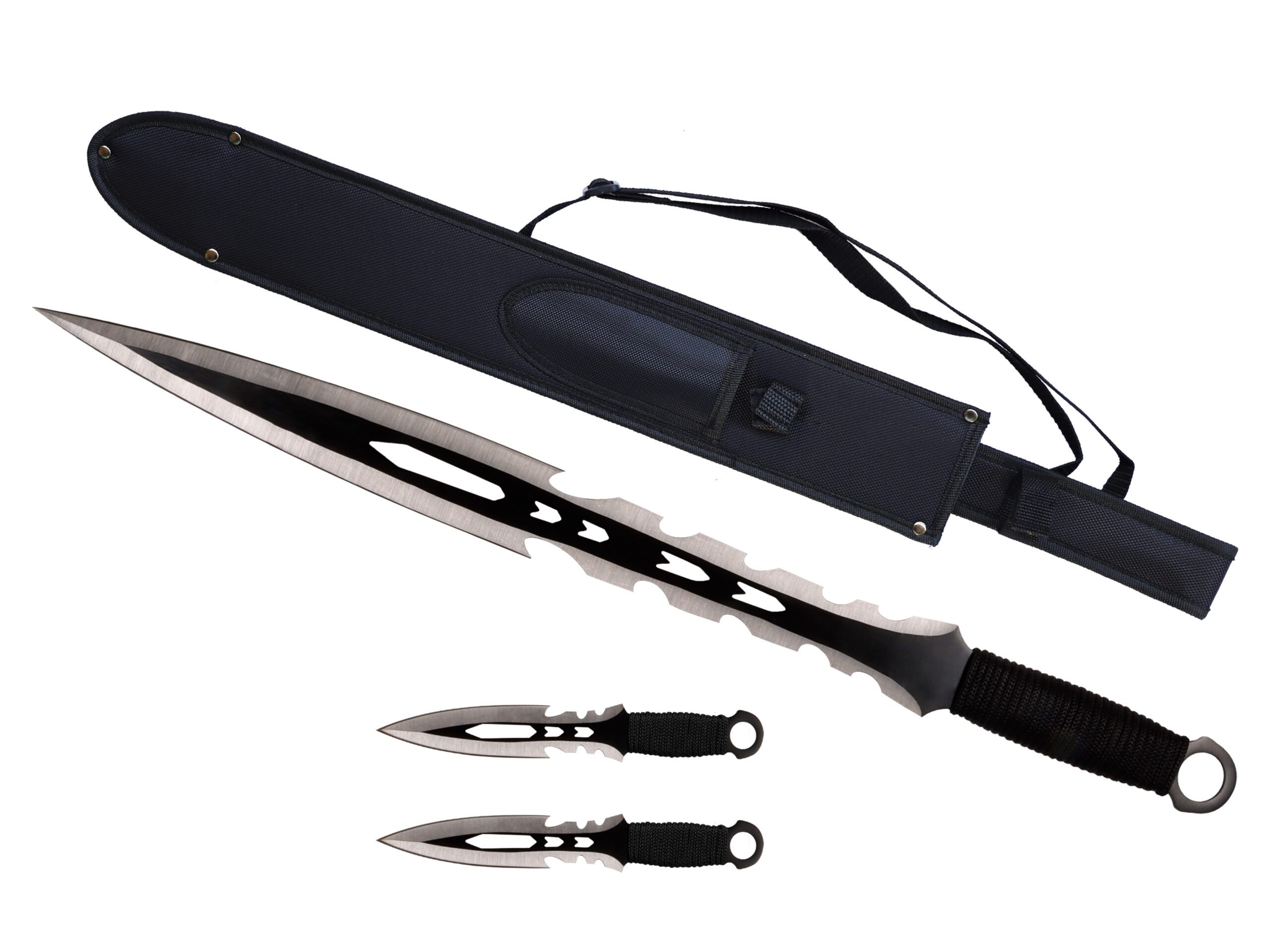 - 27″ Tactical Machete Sword w/ Two 8″ Throwing Knives