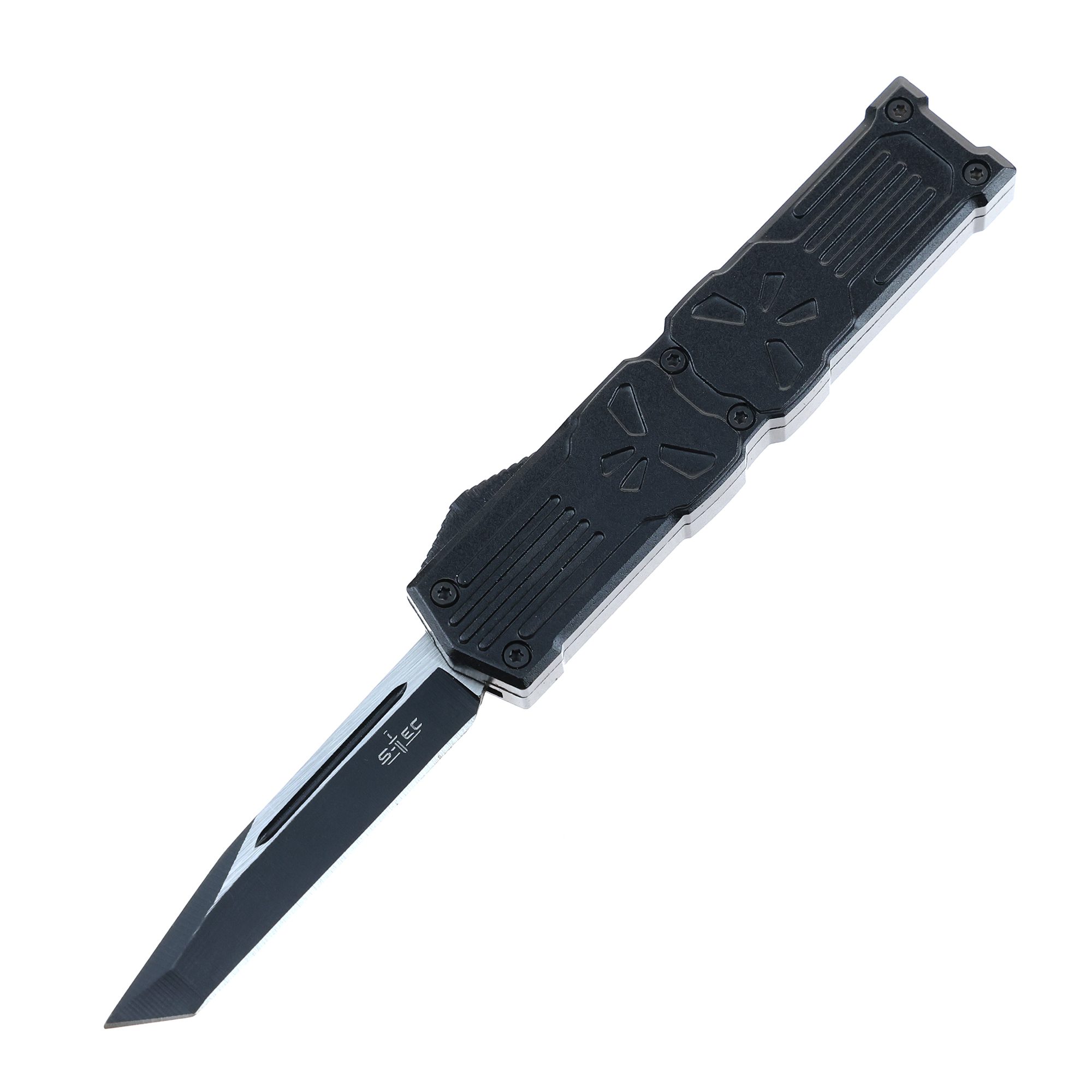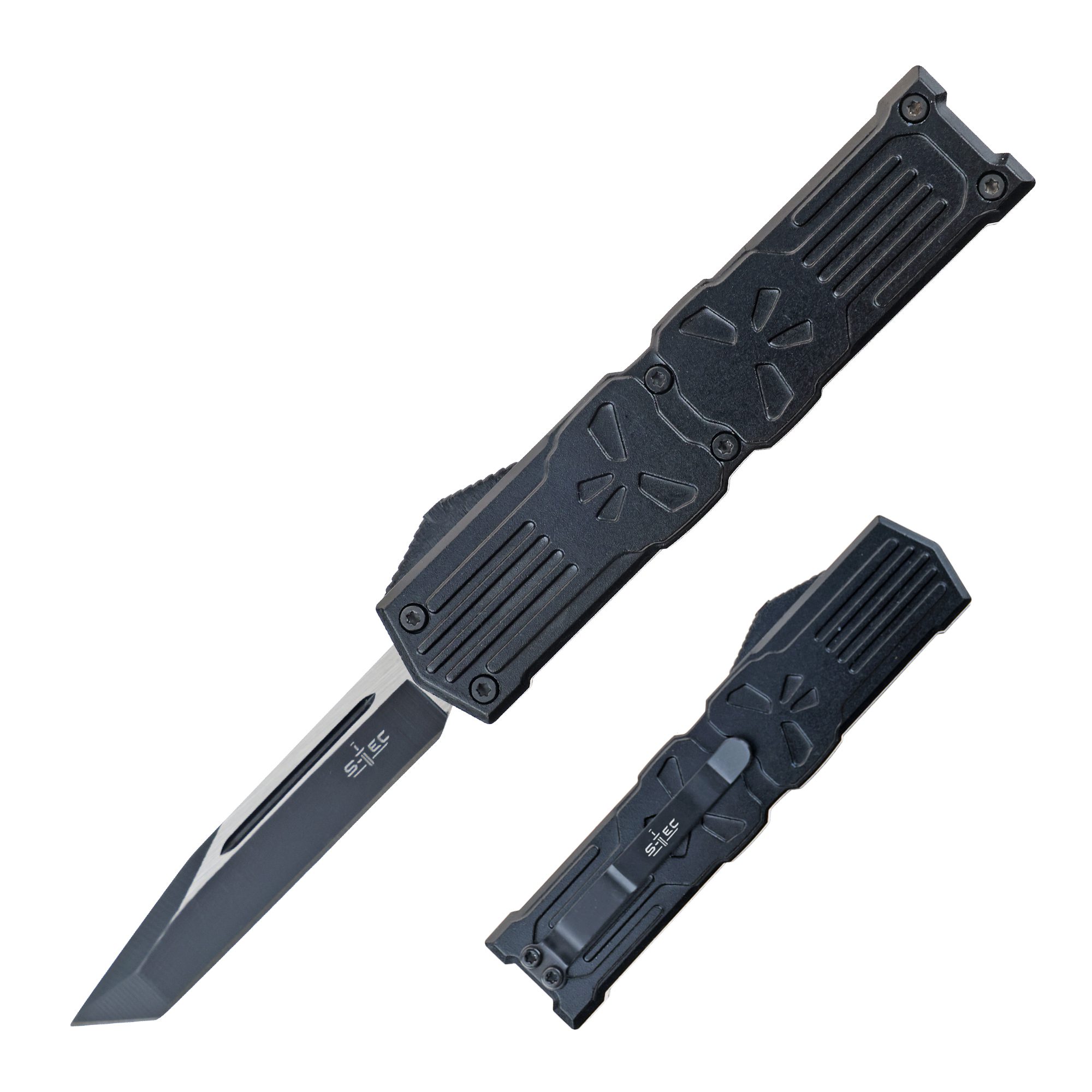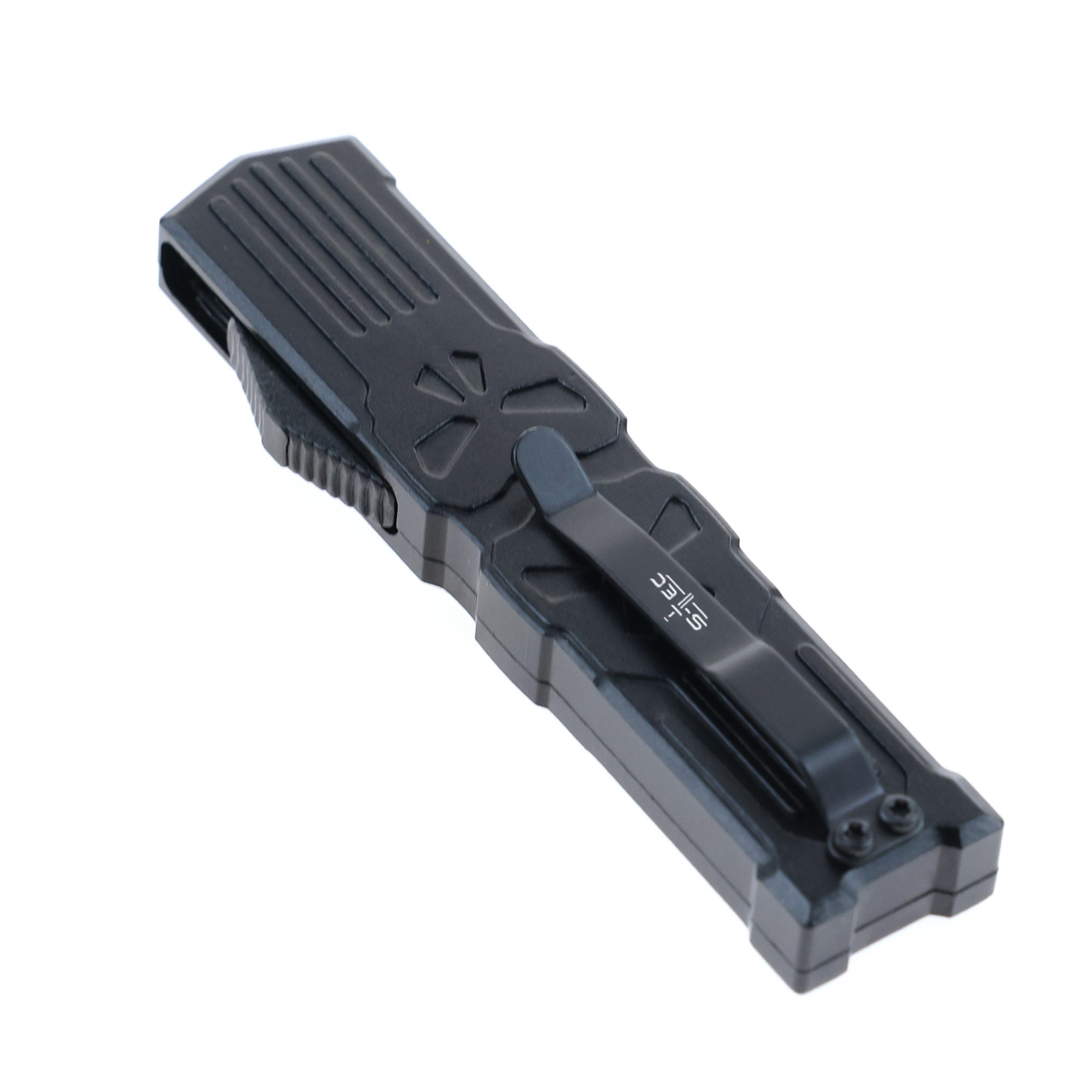 • 5.25″ Anodized Aluminum Handle Mini OTF w/ Pocket Clip- Black