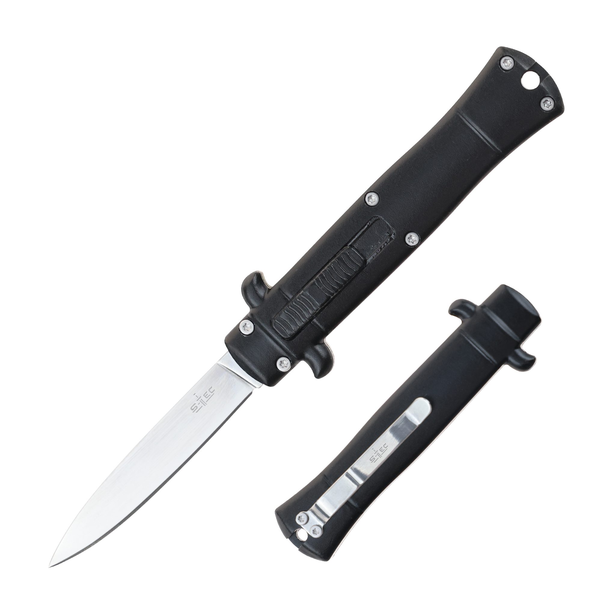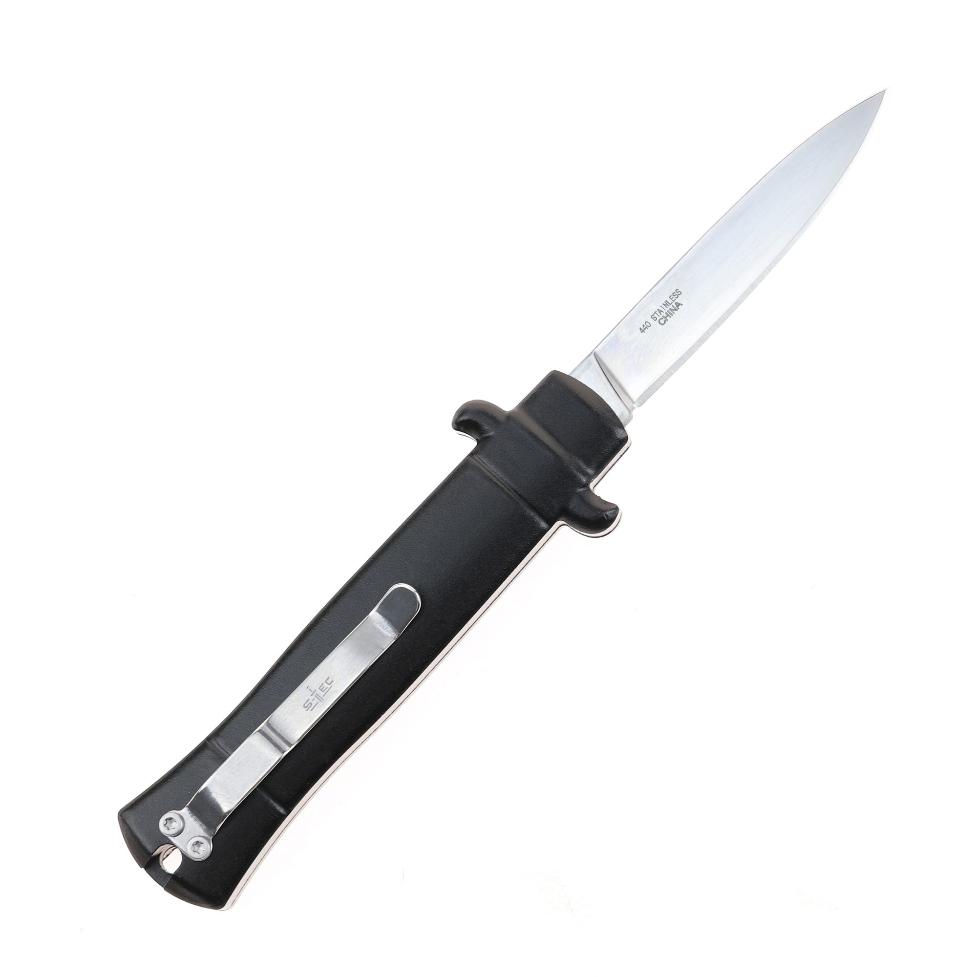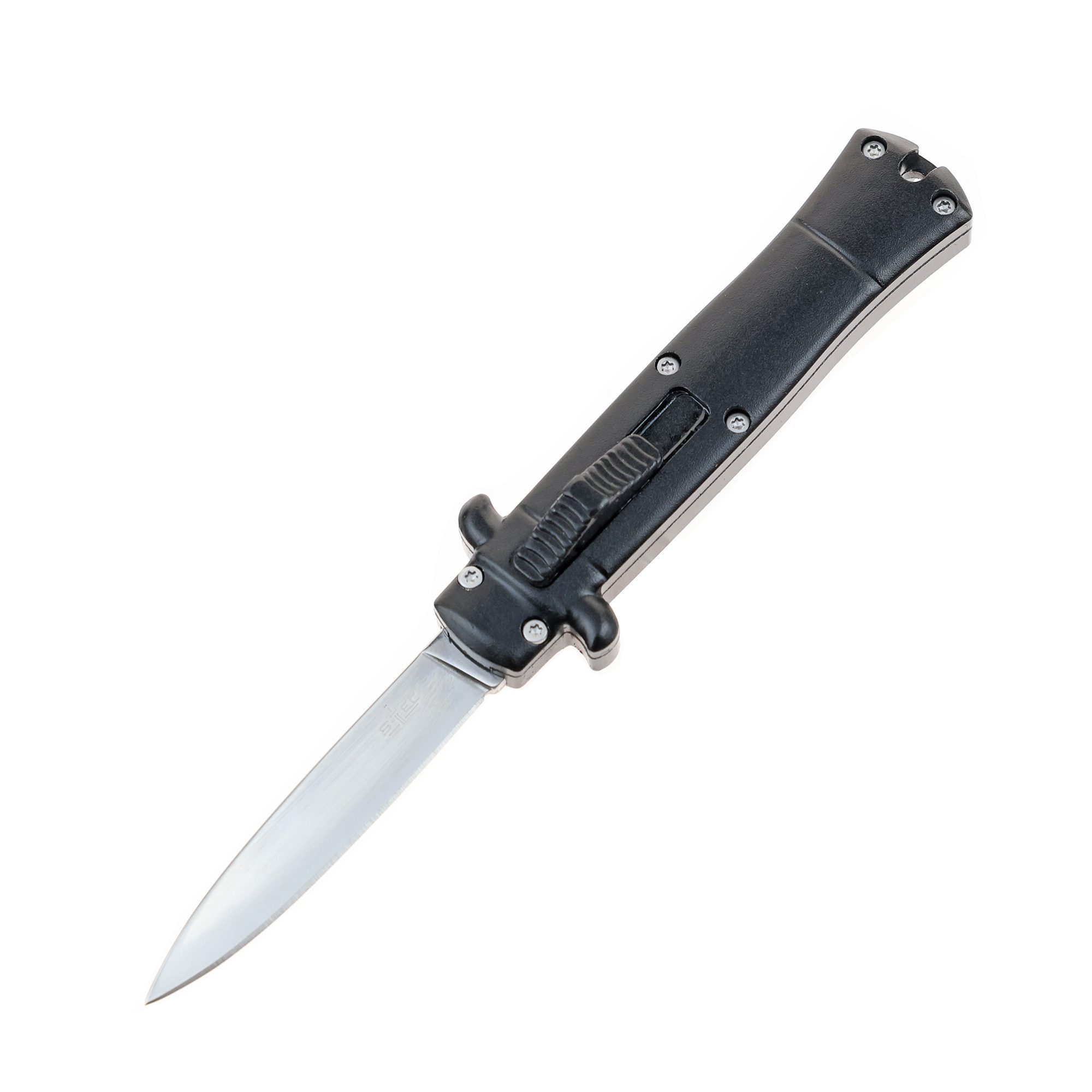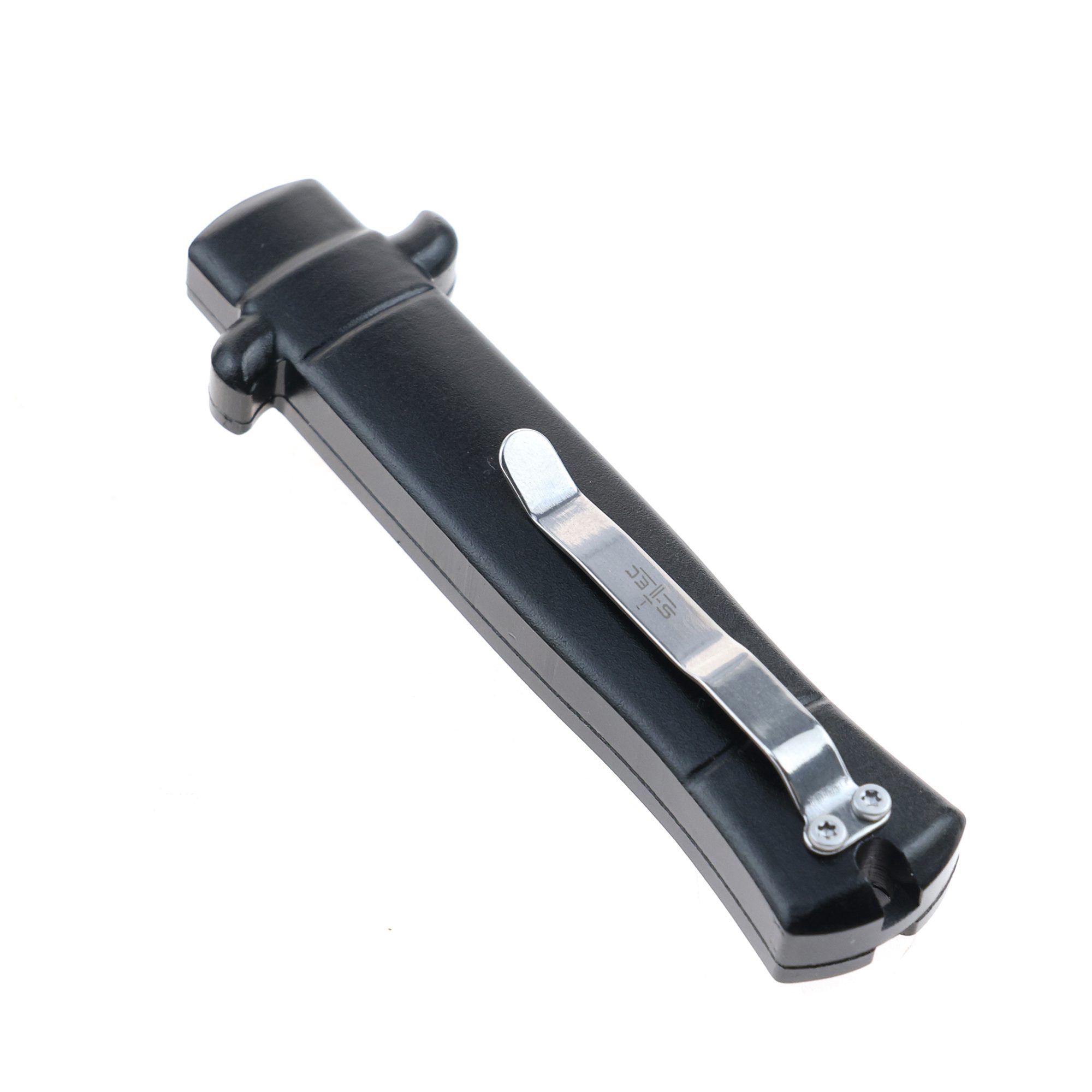 - 5.25″ Anodized Aluminum Handle Mini OTF w/ Pocket Clip- Black