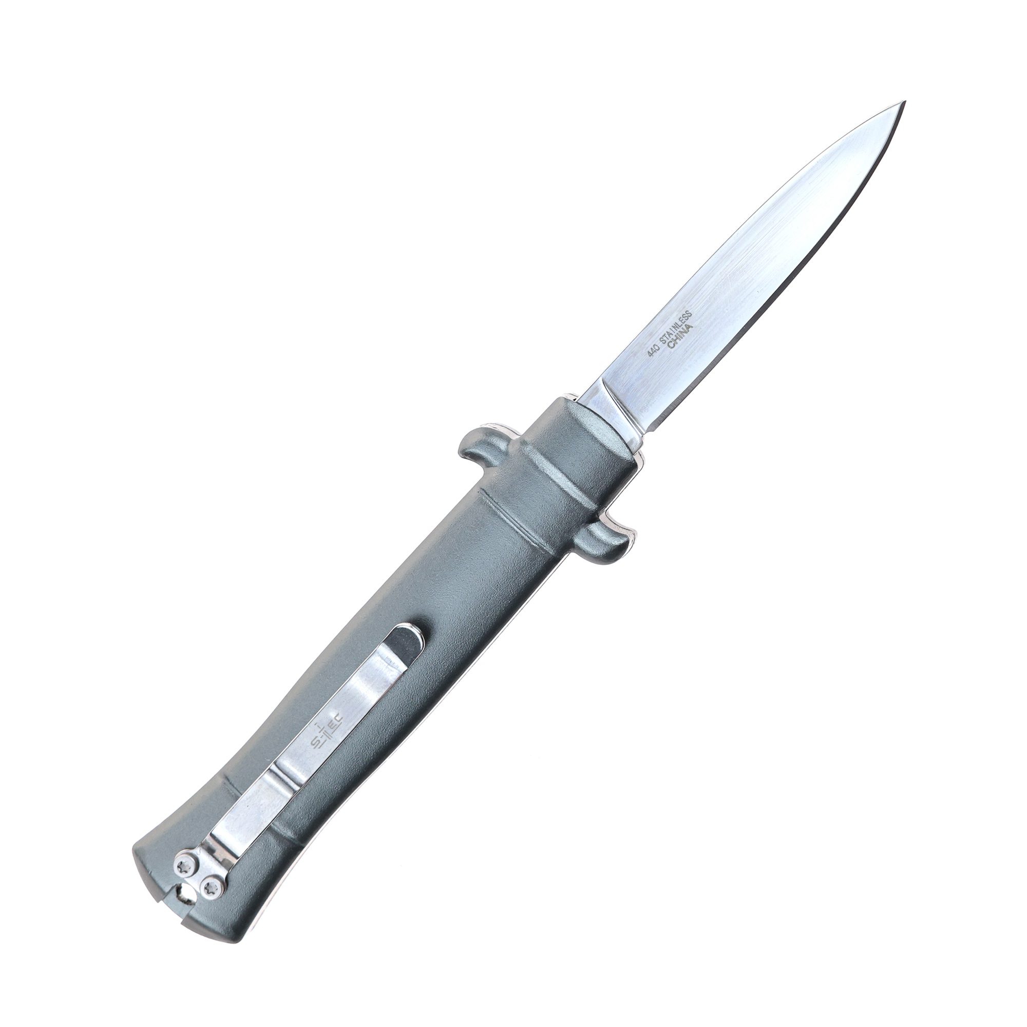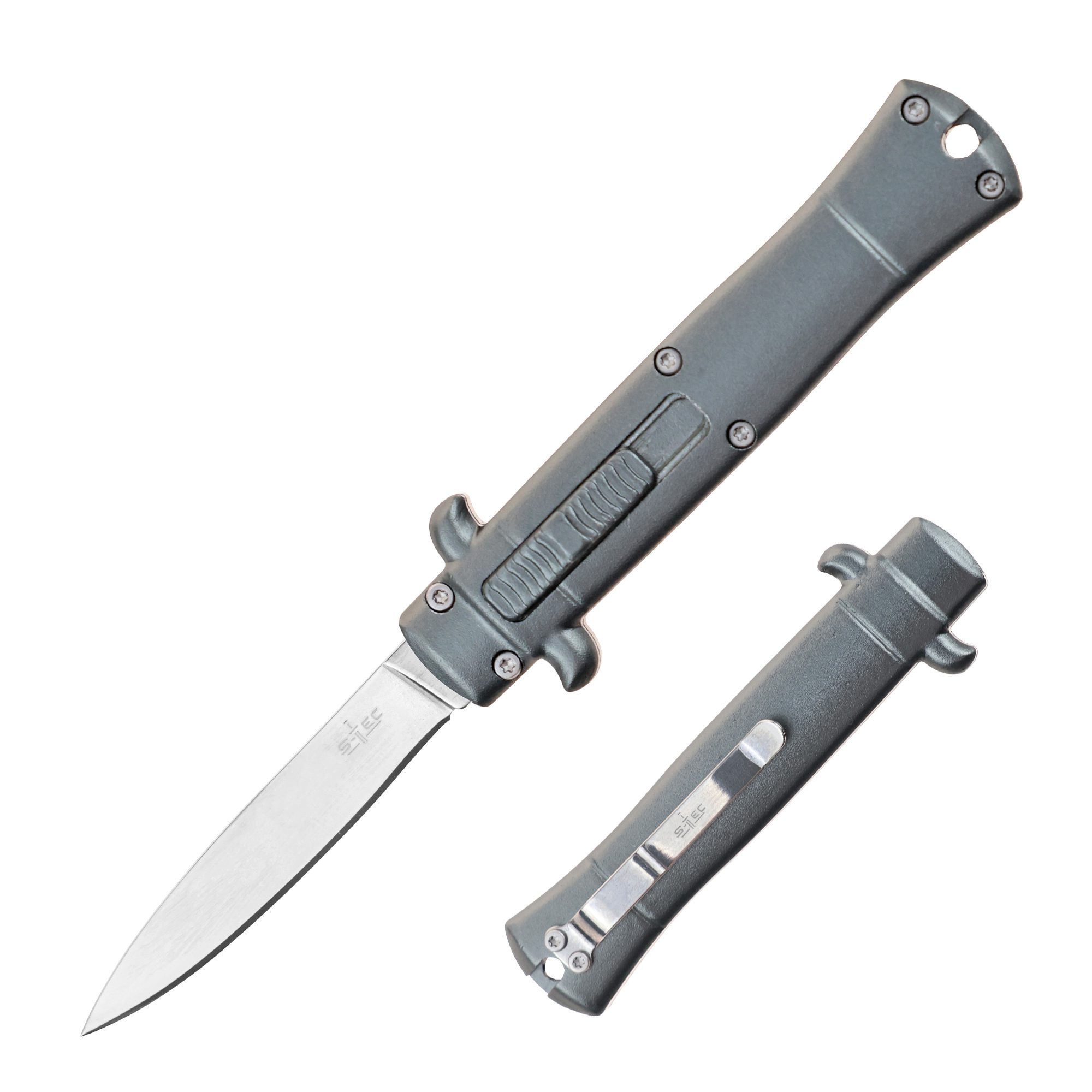 - 5.25″ Anodized Aluminum Handle Mini OTF w/ Pocket Clip- Gunmetal