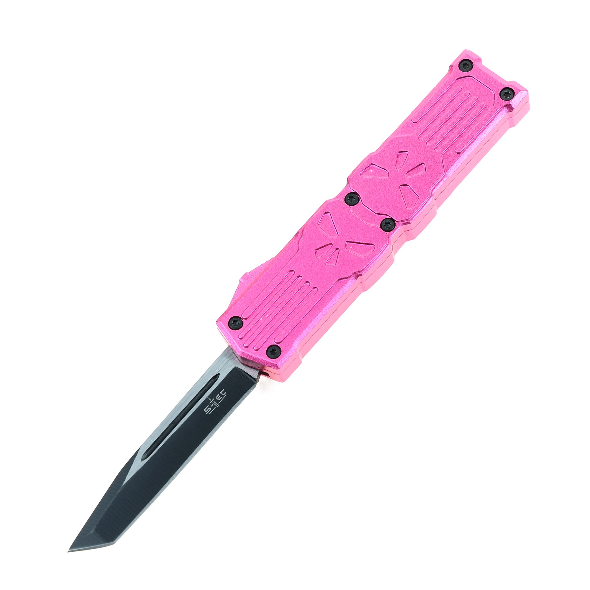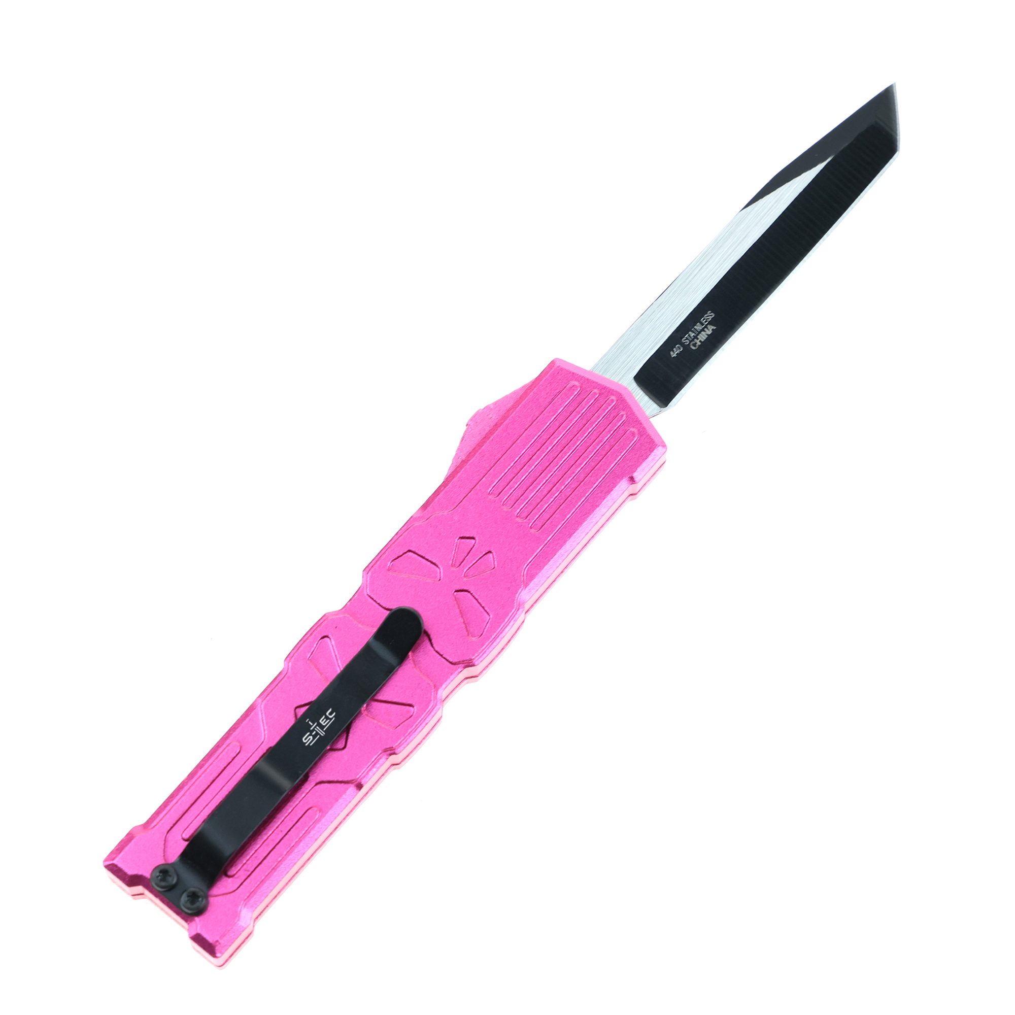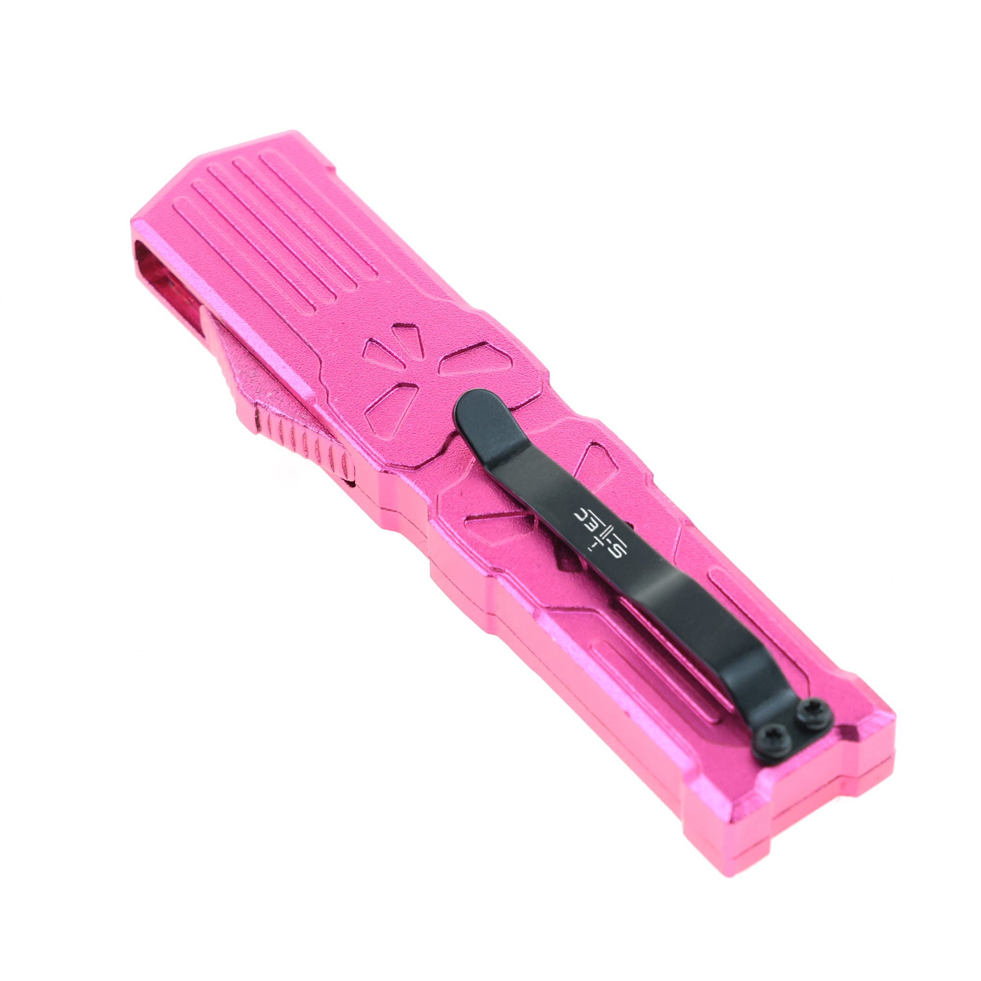 • 5.25″ Anodized Aluminum Handle Mini OTF w/ Pocket Clip- Pink