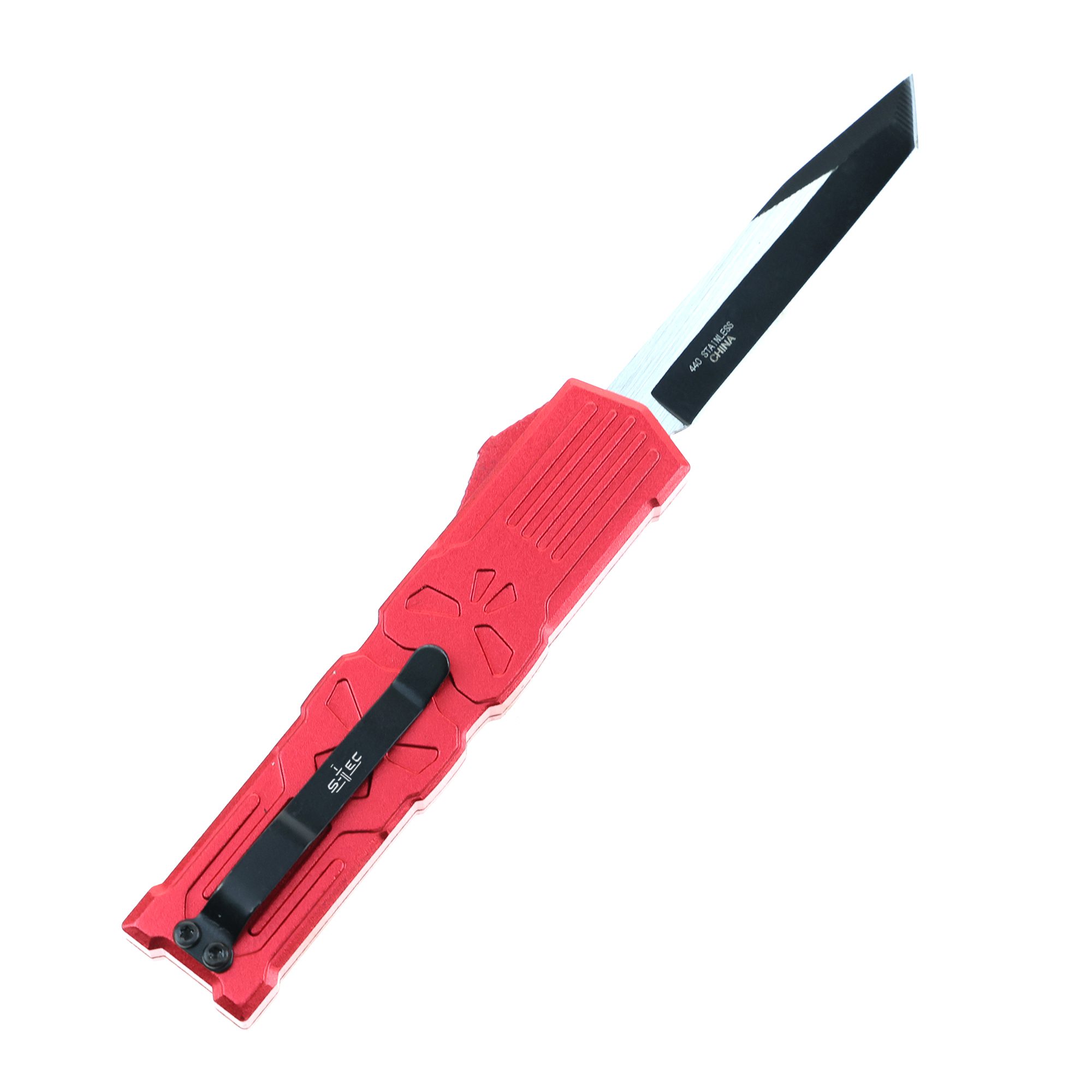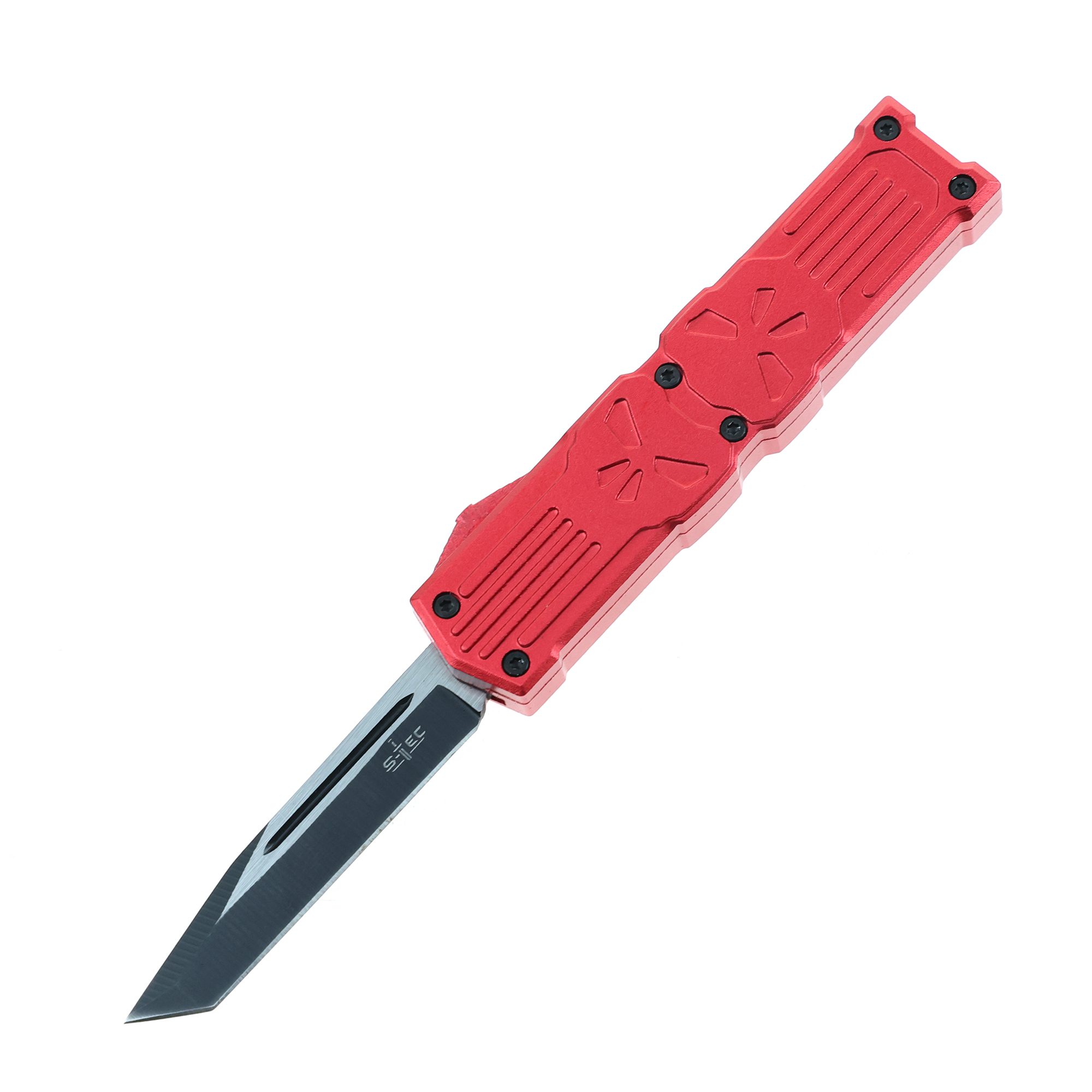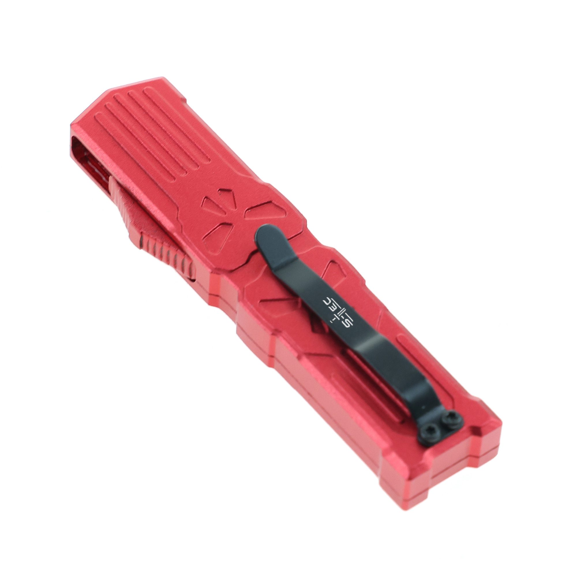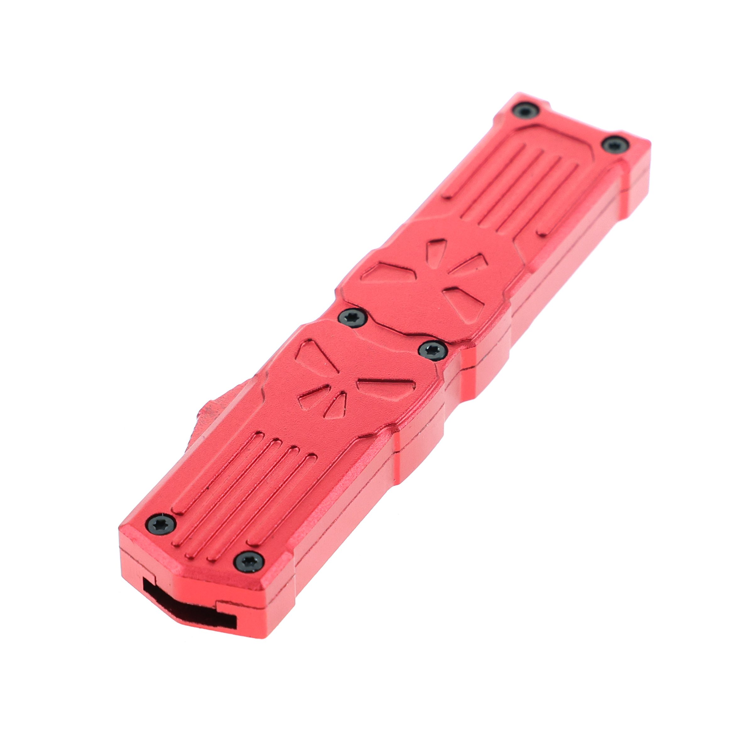 - 5.25″ Anodized Aluminum Handle Mini OTF w/ Pocket Clip- red