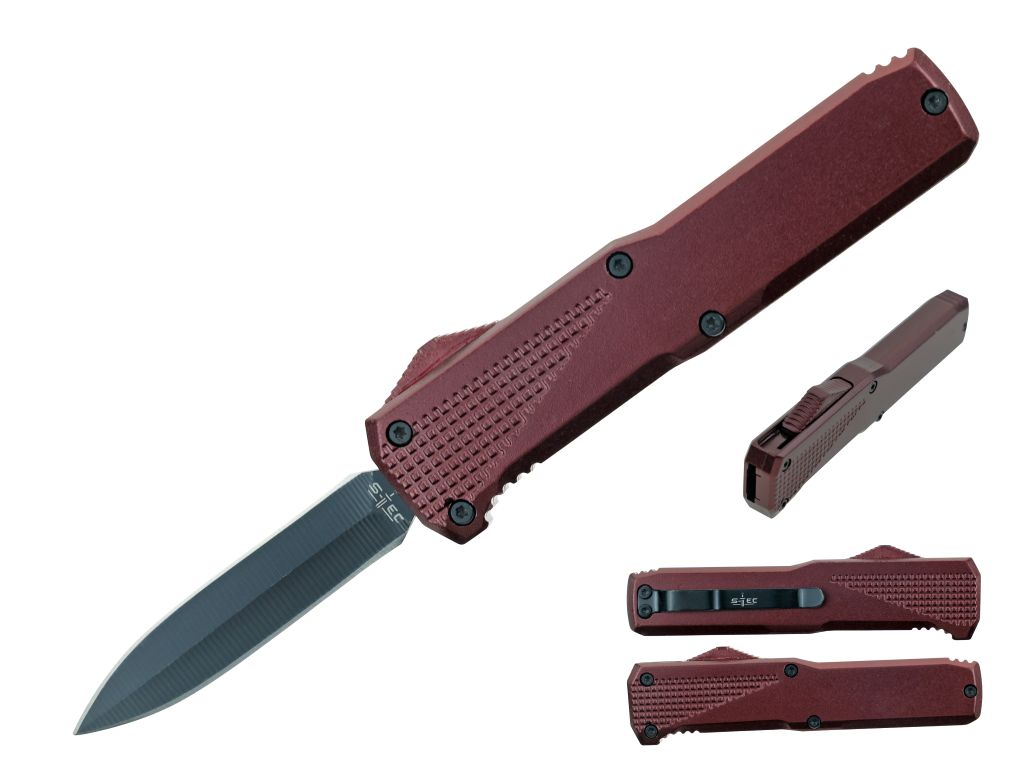 • 5.25″ Anodized Aluminum Handle Mini OTF w/ Pocket Clip- Wine Purple