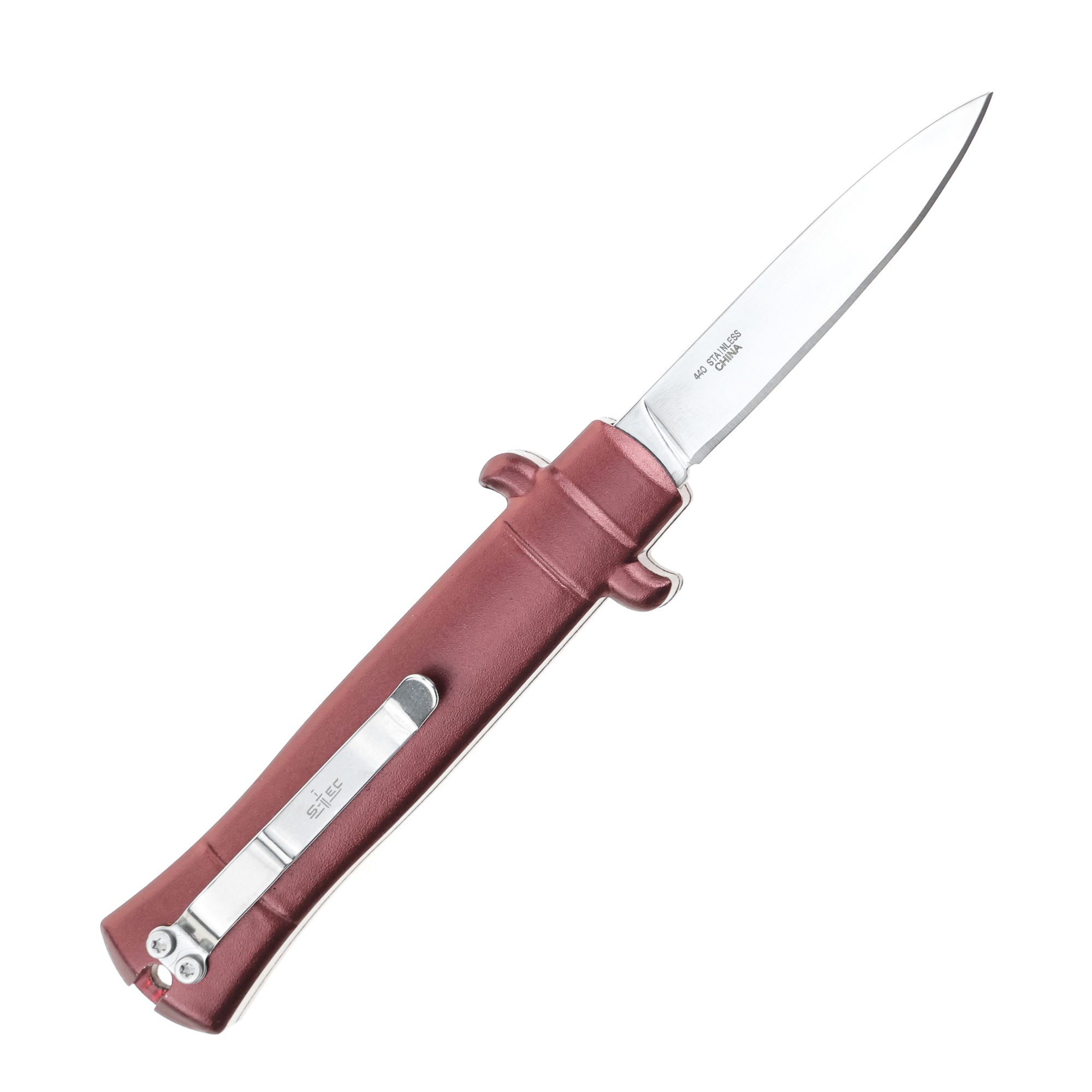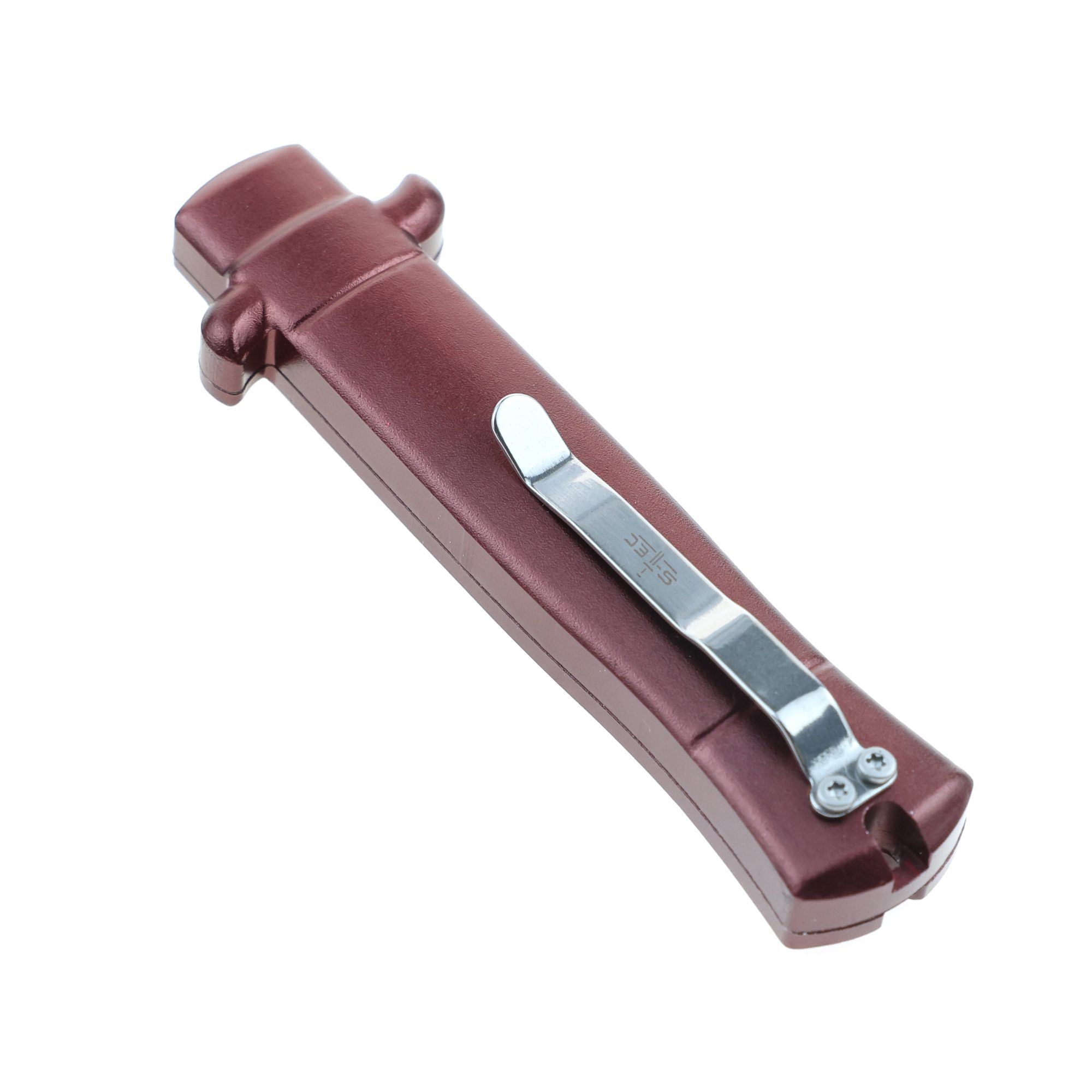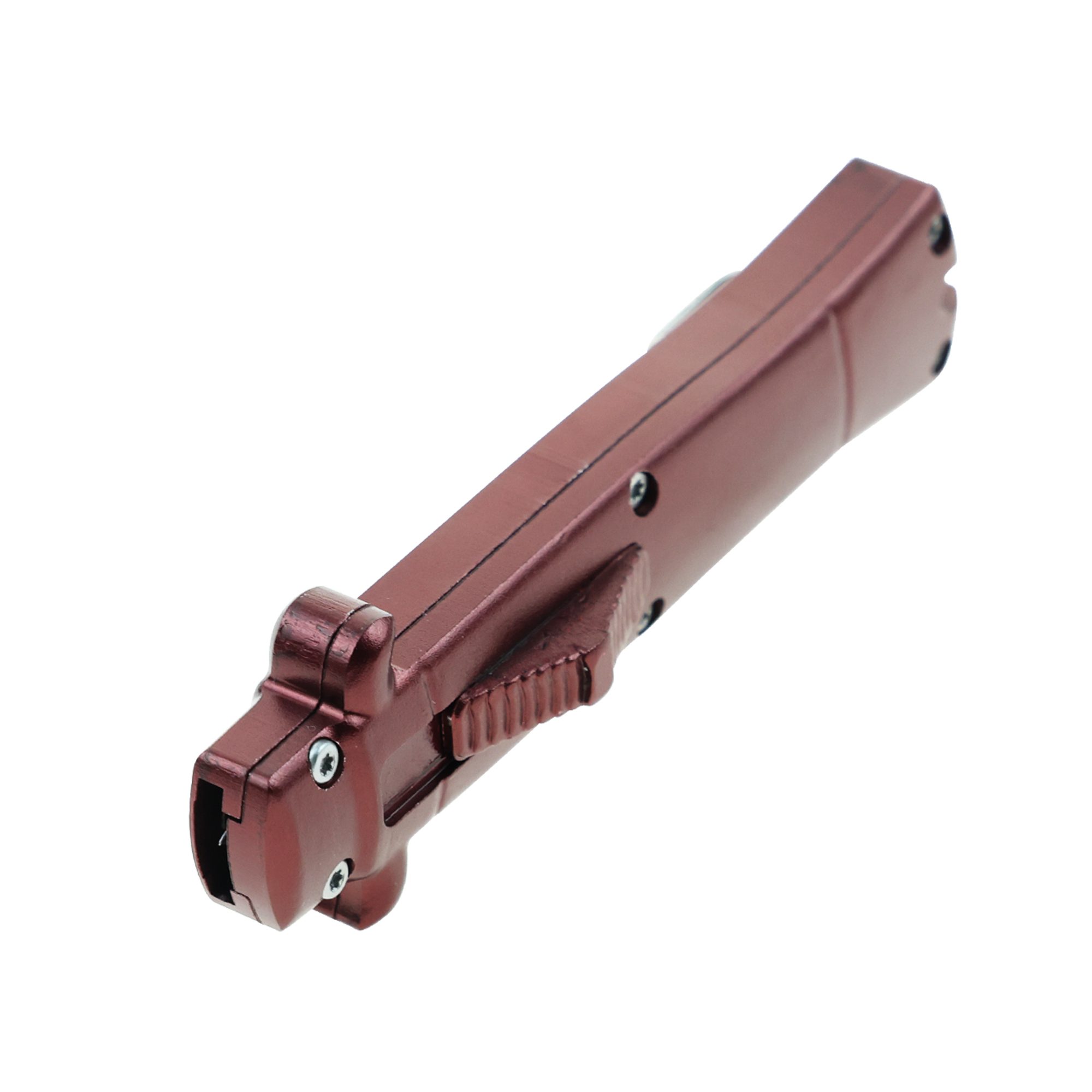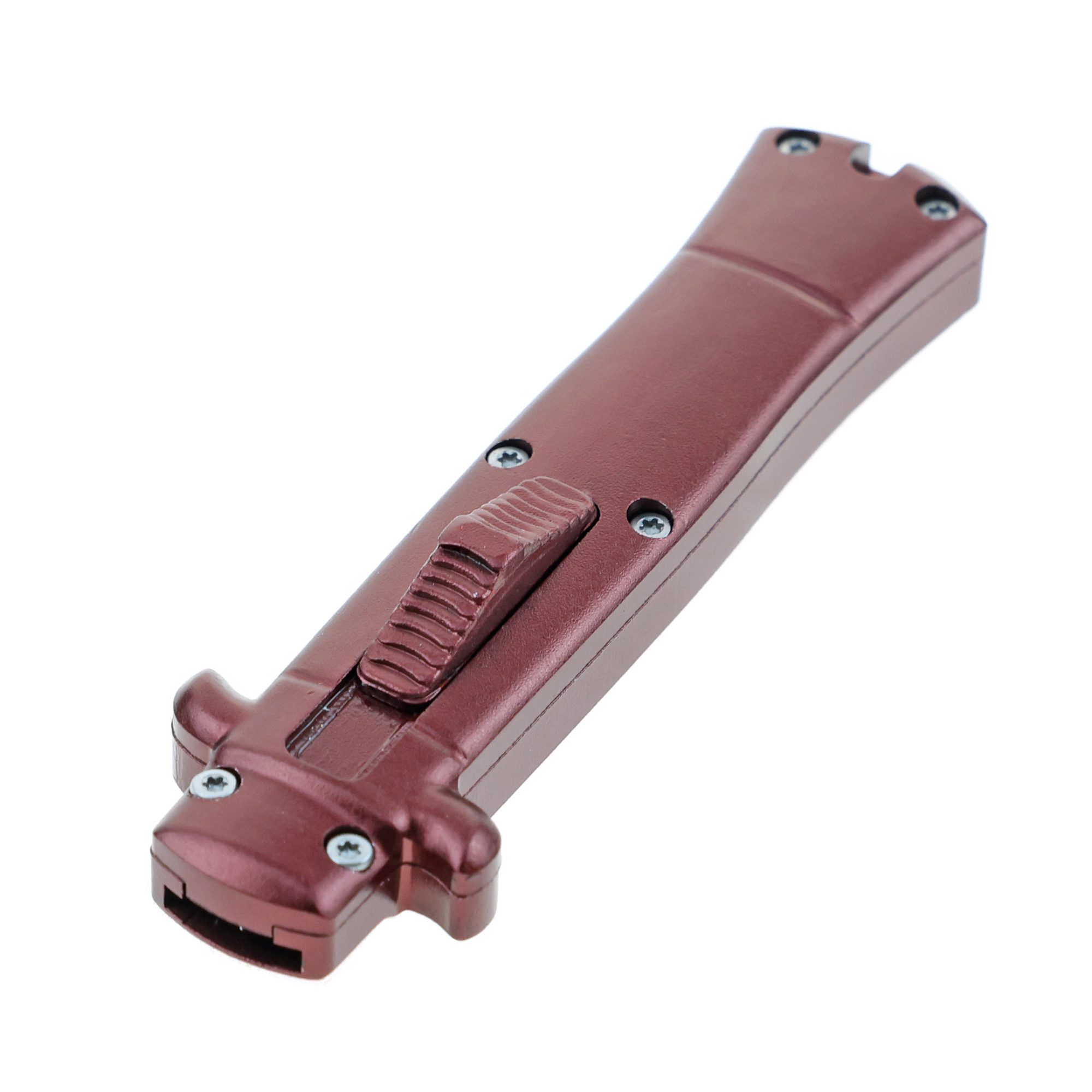 - 5.25″ Anodized Aluminum Handle Mini OTF w/ Pocket Clip- Wine Red