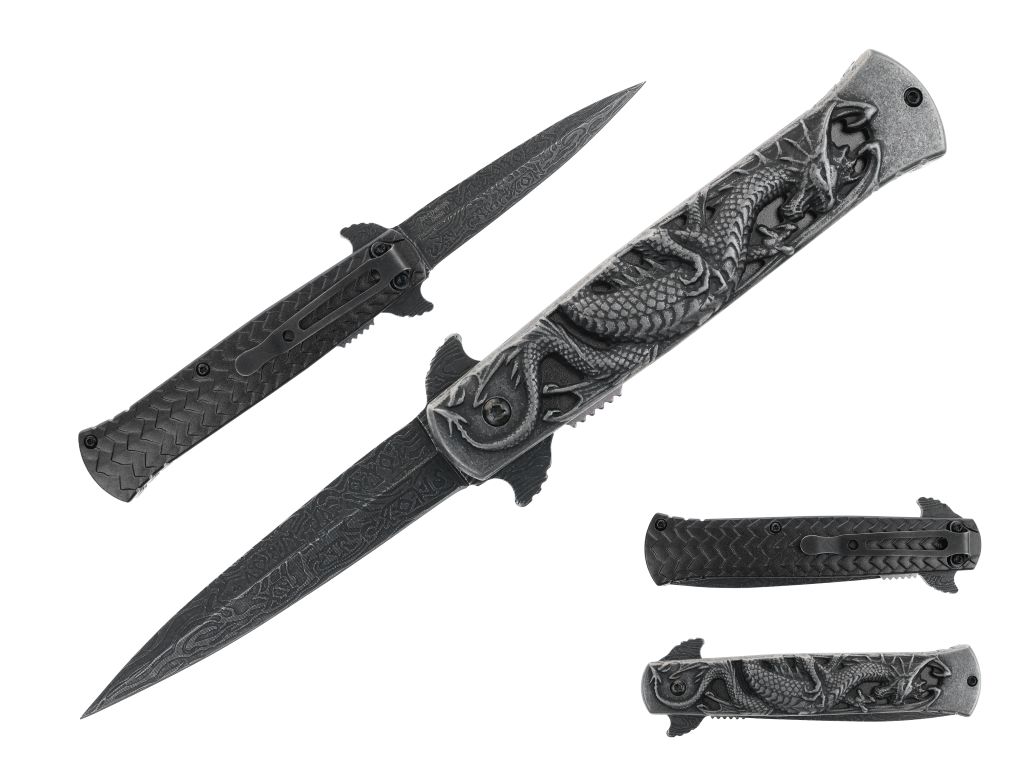 - 8.75″ Assisted Folding Knife with Stainless Steel Dragon HDL