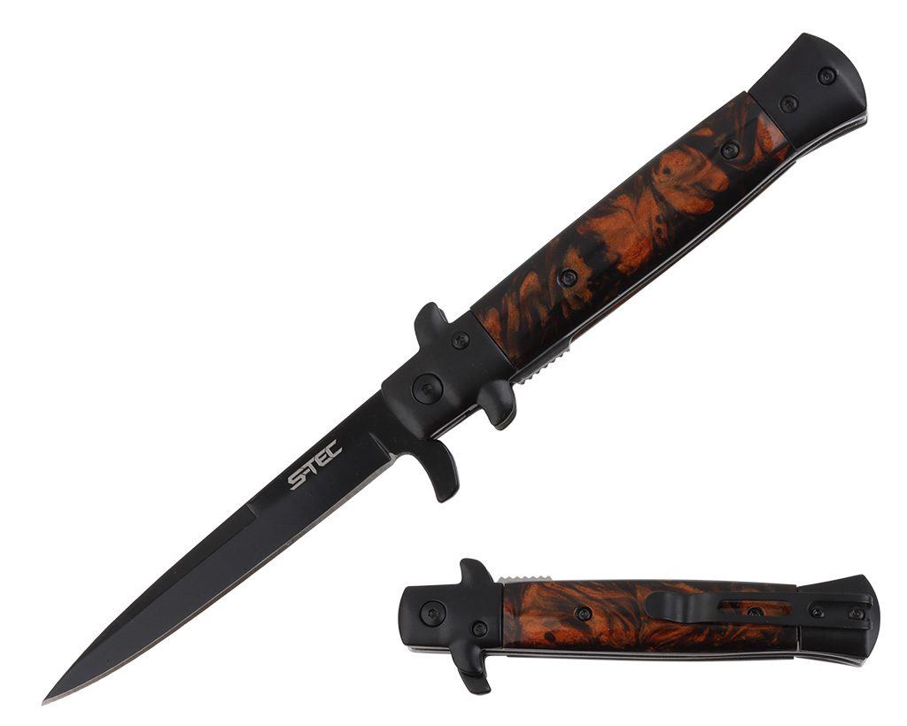 9″ Stiletto Style Spring Assisted Knife w/ 4.75″ Blade – Wood Black
