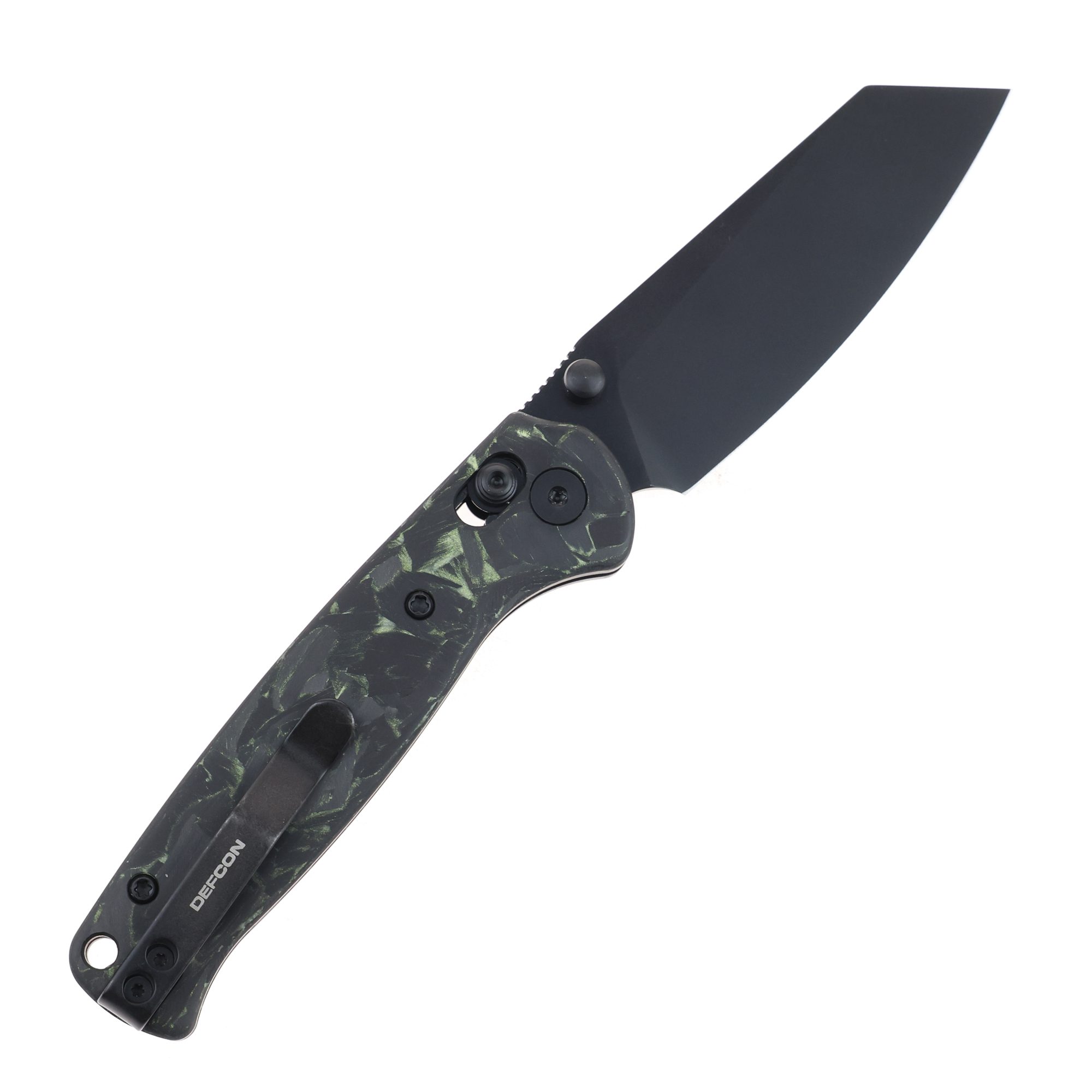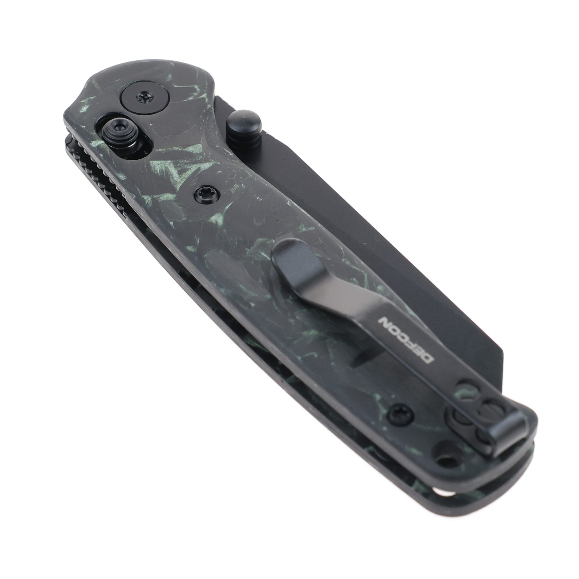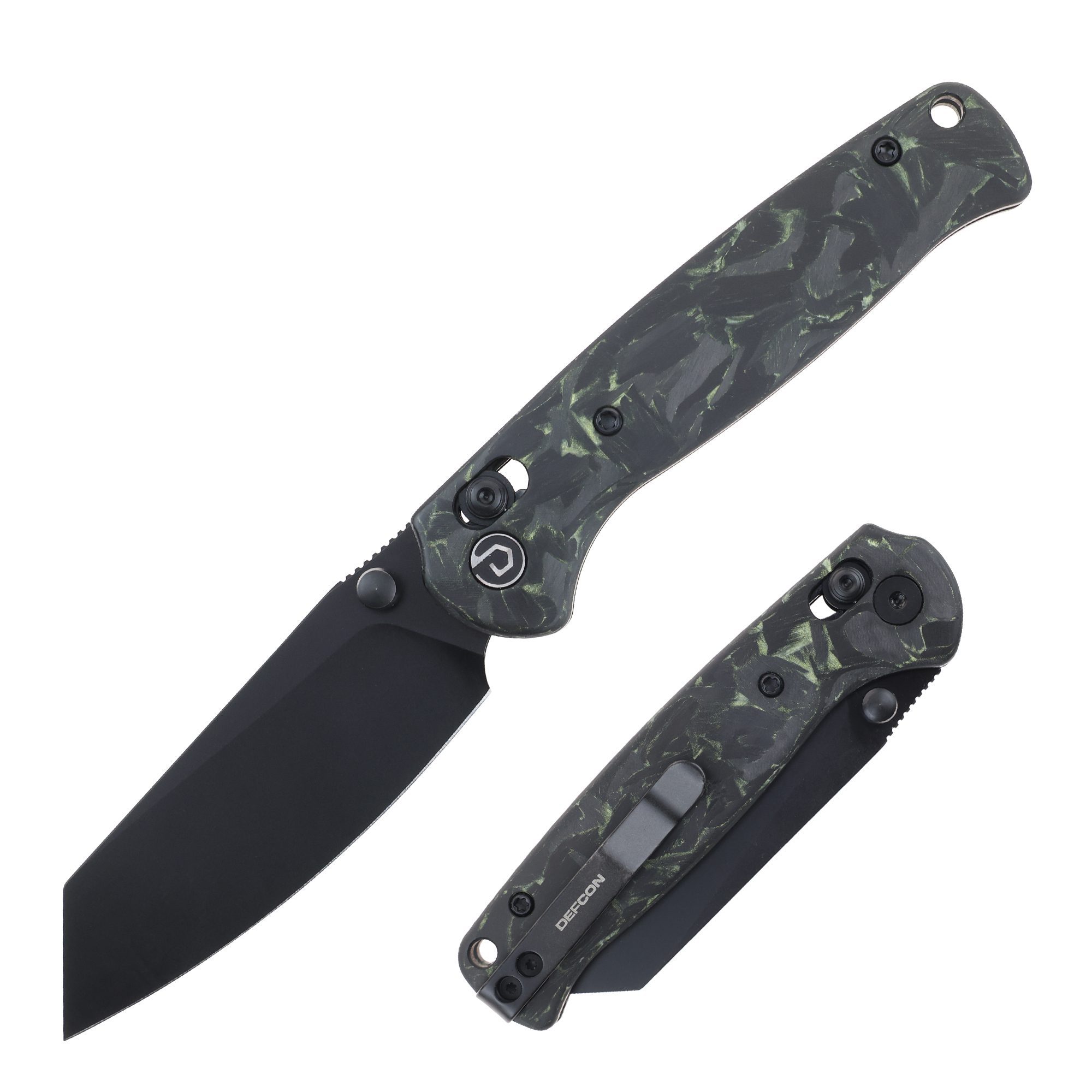DEFCON 7.25″ Axis Lock Carbon Handle Folding Knife – Forged Carbon Black/Green