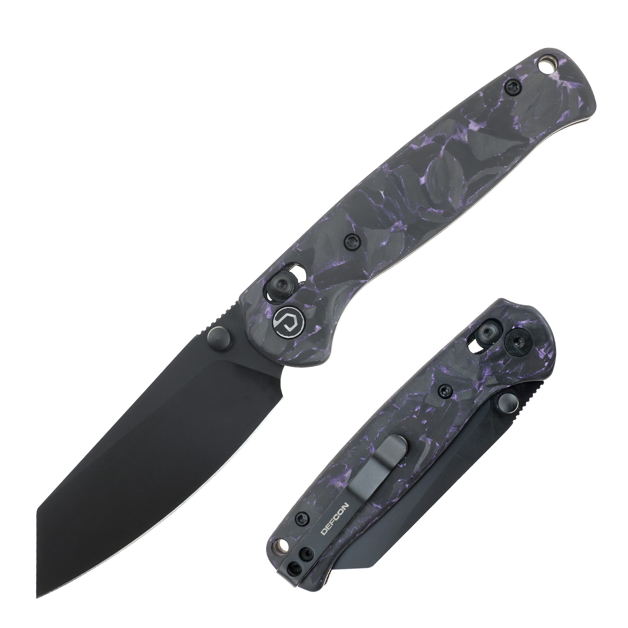 DEFCON 7.25″ Axis Lock Carbon Handle Folding Knife – Forged Carbon Black/Purple