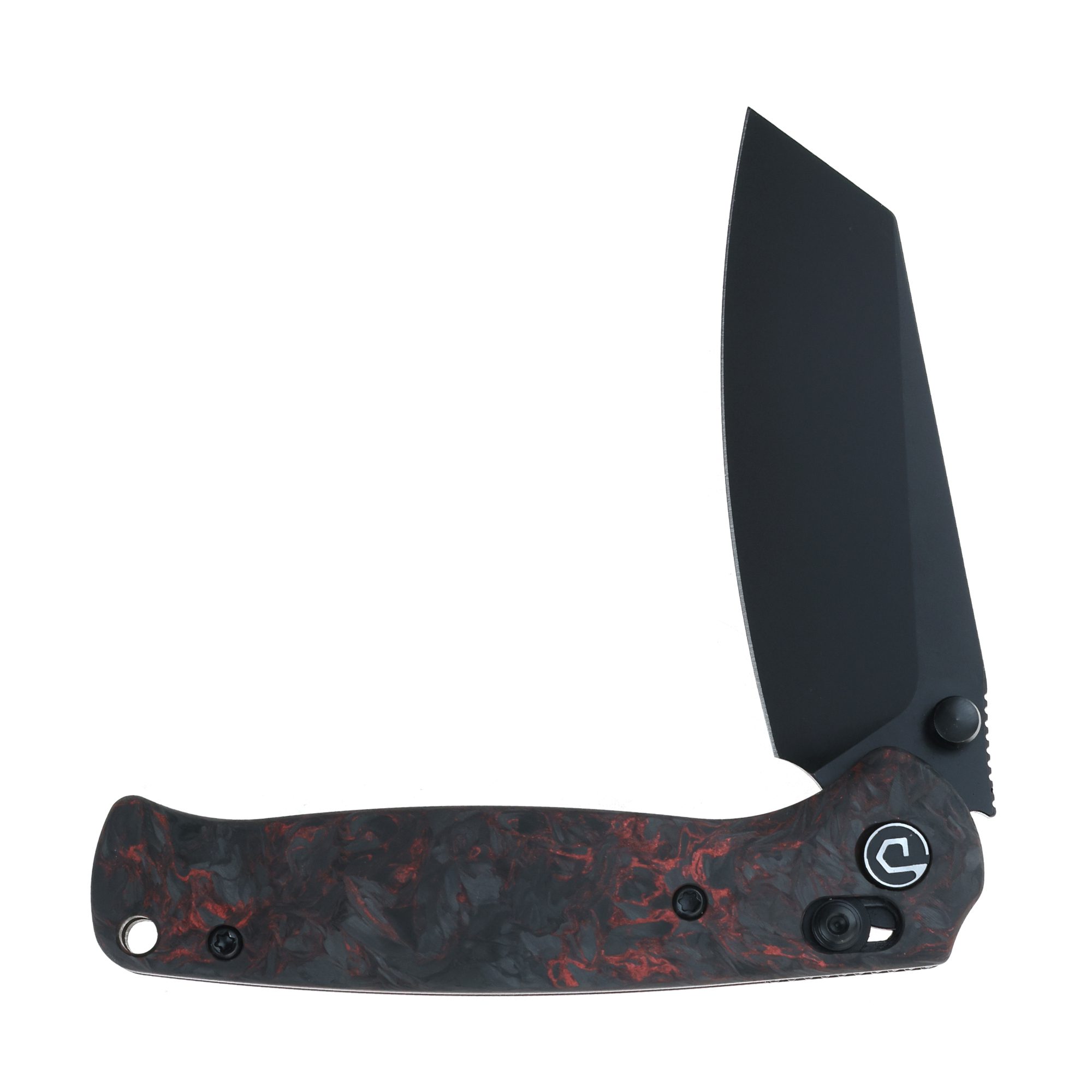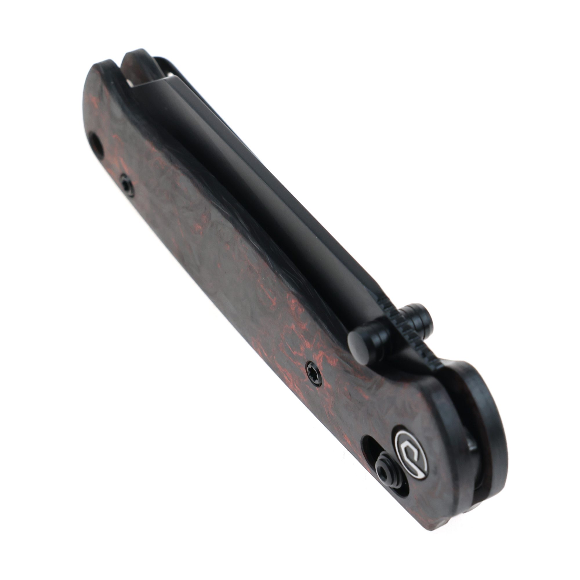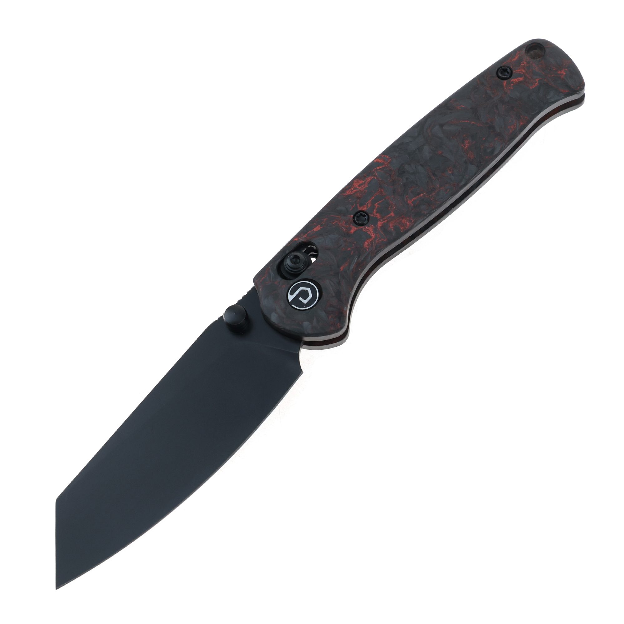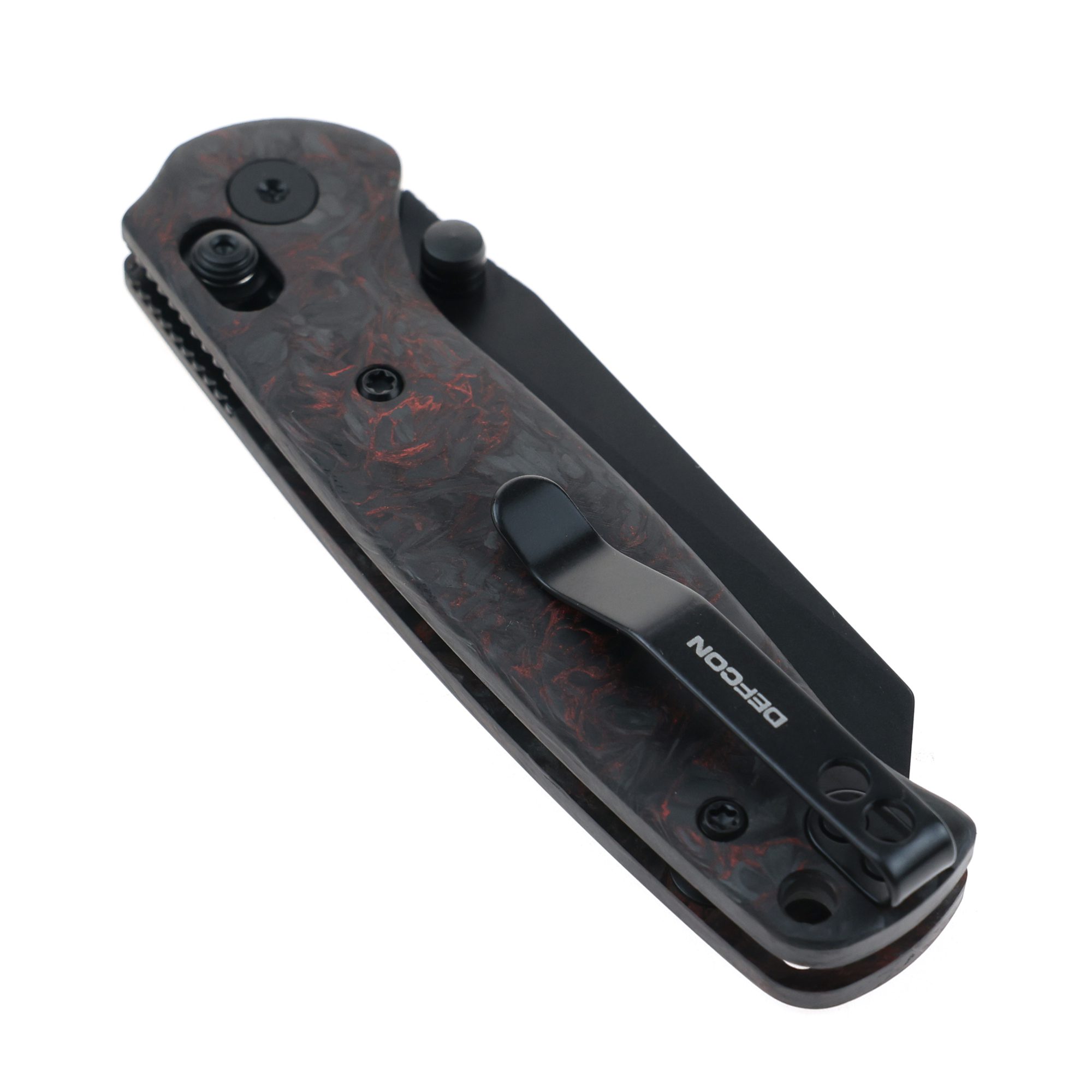 DEFCON 7.25″ Axis Lock Carbon Handle Folding Knife – Forged Carbon Black/Red