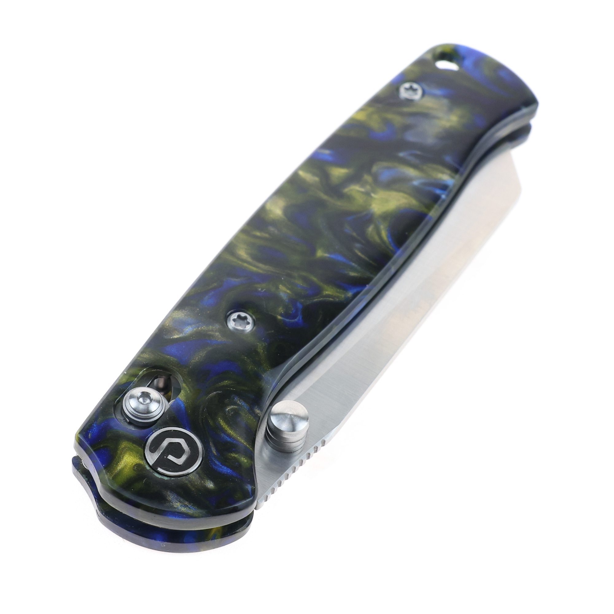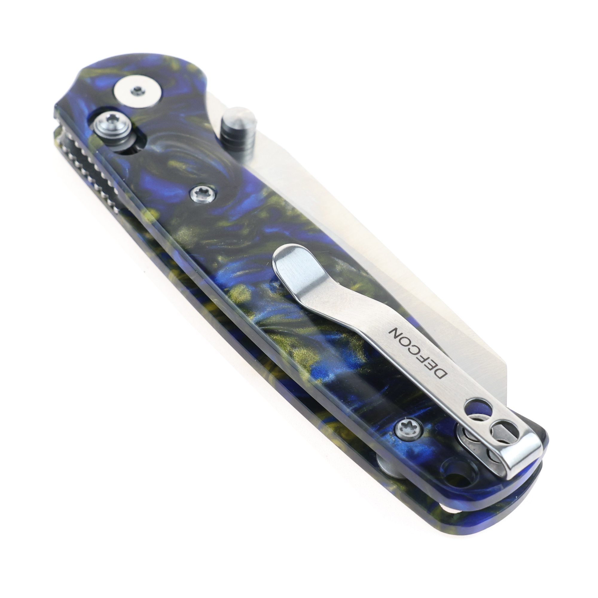 DEFCON 7.25″ Axis Lock Marble Resin Handle Folding Knife – Black Blue